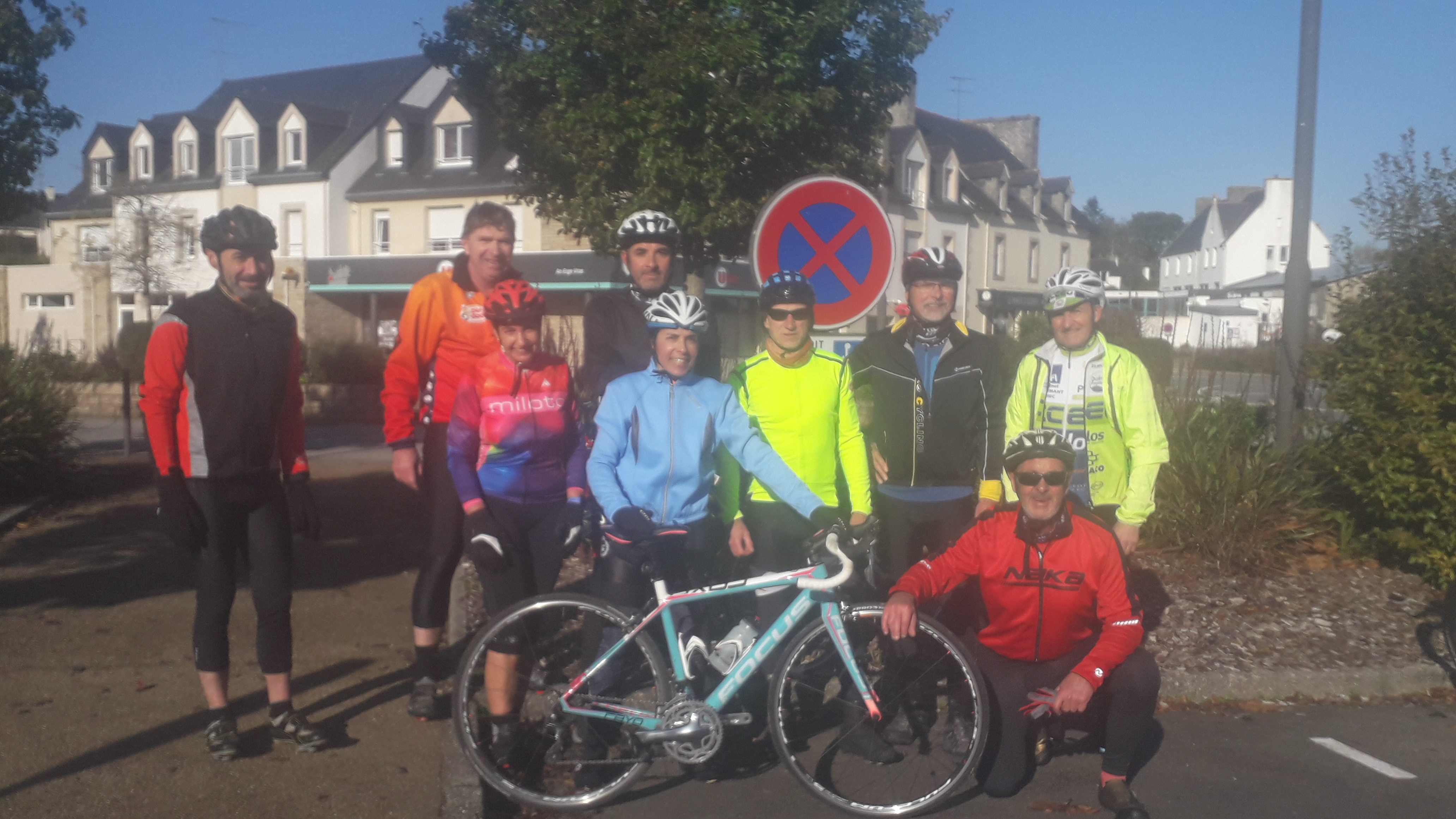En ce jour ensoleillé du 11 novembre, 9 ergevrasiens à pédales, dont 2 femmes Chrystele et Myriam, se sont élancés sur les routes de campagne pour un périple de 62 km.
