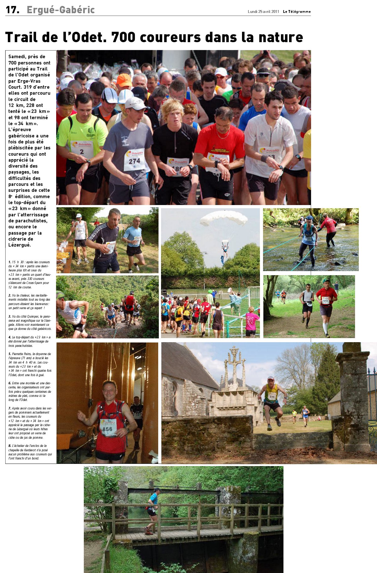 Le Télégramme a consacré une page entière au trail de l'Odet agrémentée de nombreuses photos. Voici la page originale et la version colorisée.